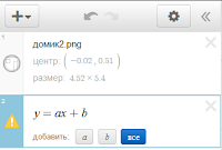 2. В текстовом поле (левый угол) запишем общее уравнение линейной функции с коэффициентами a и b. Для набора уравнения используйте английскую раскладку на клавиатуре. При наборе внизу страницы появляется дополнительная клавиатура, которая позволяет добавлять любые математические выражения.
